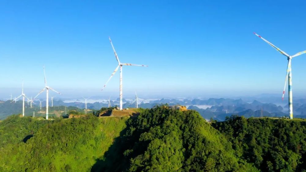 天等牛头岭风车山地公园位于天等县上映乡、龙茗镇、福新镇交界处,在海拔1300多米的牛头岭山上,有25座连绵山脉的风力发电机,是世界上首个在风机上绘画壮族图腾的风车,壮乡风情浓郁。在这里,游客可以围炉而坐、打卡拍照、休闲露营......耳边吹来清风,入目皆是美景,自在惬意。