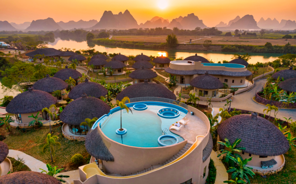 在野宿集坐落在黑水河畔,由野白、万相、既见、西坡、喜空五个高端民宿品牌共同打造同一个空间,不同主题。有媲美桂林的喀斯特山水、多姿多彩的少数民族文化同毗邻越南的异国风情,游客可以在这里放空心灵,回归宁静的田园生活。