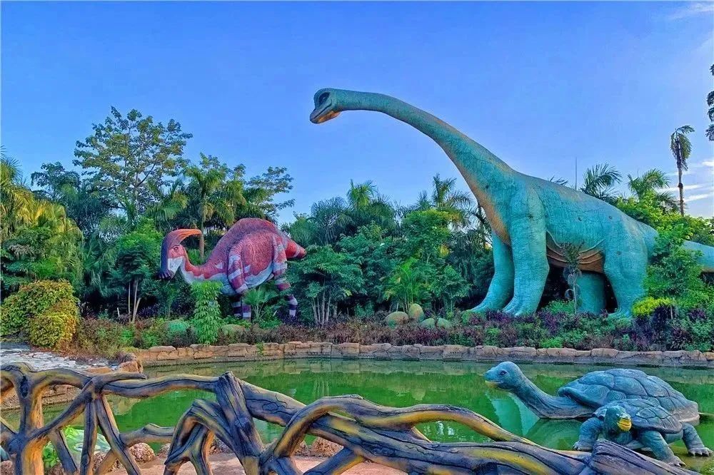 景区拥有逾千头大型仿真恐龙及原始尺寸远古生物模型,悬挂式飞龙、过山车等30余个游乐设备,以及9D云端玻璃桥、海底世界、无动力乐园等娱游项目。巨型海底世界汇集鲨鱼、海龟、海狮等万千珍奇海洋动物及亚马逊珍稀鱼类,让孩子在玩乐中增长见识,开阔眼界。