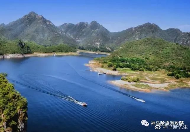 9、易水湖:位于保定境内易县城西南30公里处,湖的南侧及狼牙山相连,北侧是紫荆关,西侧是海拔高达1283米的五峰寨,东侧是九龙山。易水湖锁住易水河上游水流汇集成湖,水质清澈纯净。易水湖周围环境优美,景色宜人。