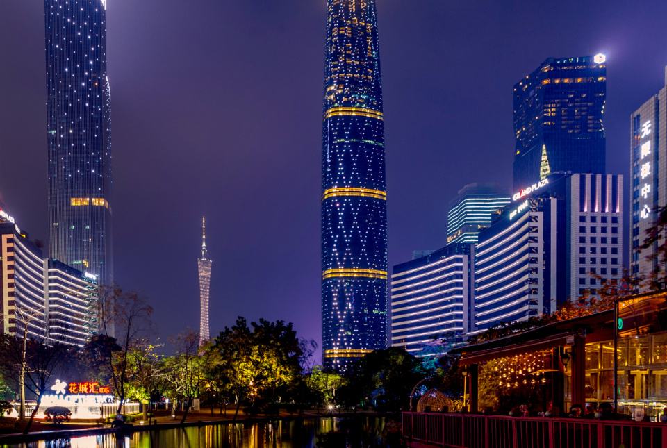 花城广场被誉为广州的“城市客厅”,是广州最大的广场。花城广场绿树环绕,建有人造景观湖、大型喷泉同灯光广场,还有五个花岛,一年四季都有花开。花城广场也是远观广州塔的好地方,每当夜幕降临,隔江看到小蛮腰绚烂的灯火十分妖艳。花城广场及其周边的建筑对比是灯光璀璨、流光溢彩,是广州夜景最浪漫的地方之一。