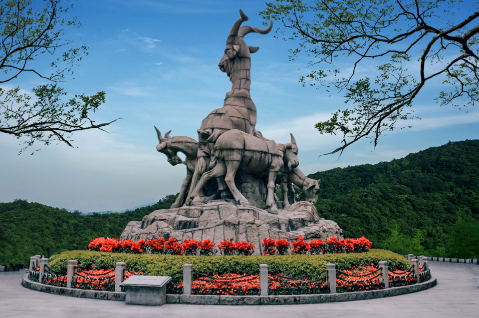 越秀公园园内树木葱茏,林荫蔽日,湖光山色,并有广州古城墙、四方炮台、中山纪念碑等历史遗迹。广州的标志“五羊”石像就在公园内。相传古代有五位仙人,骑五色羊,各携带一串谷穗降临此处,仙人把谷穗赠给居民,祝福此地五谷丰登、永无饥荒。后仙人飘然而去,留下五羊化为石头。因此,后人又称广州为“羊城”、“仙城”、“穗城”。山上是广州标志性建筑之一的镇海楼。拾阶上楼,广州全城的面貌尽收眼底,可尽情观赏羊城的景色。