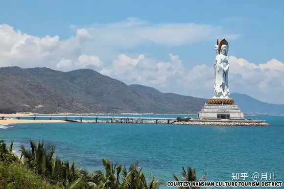 站在三亚海滩上向远处眺望,可以看到世界最大的观音像,矗立在南山脚下——这是位于中国最南端的山。