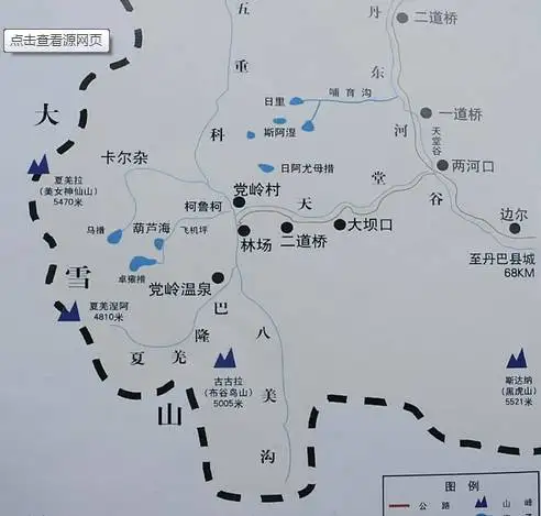 四川省德格县境内的雀儿山下,川藏公路侧,距甘孜县城98公里,距德格县城100公里。