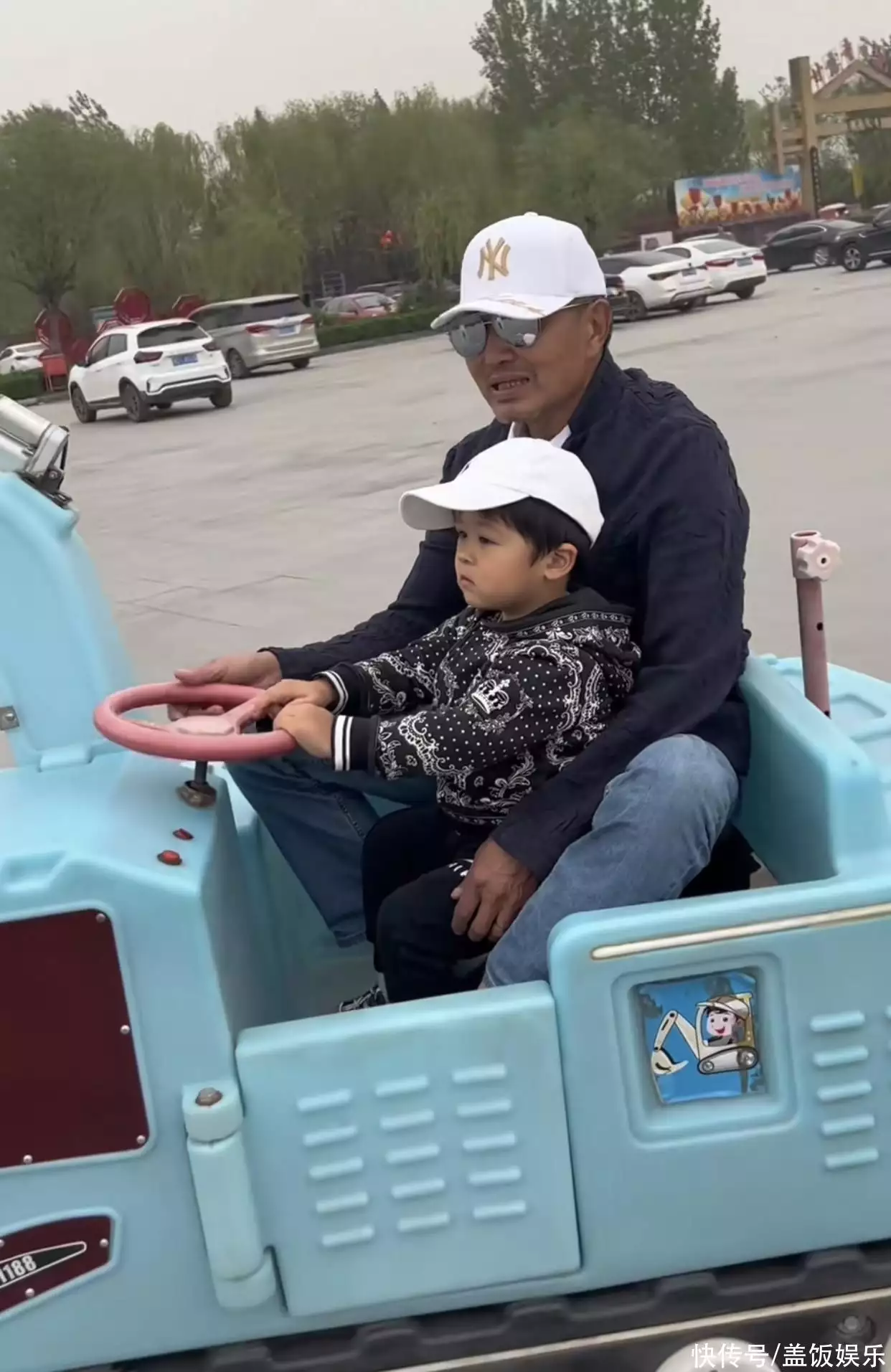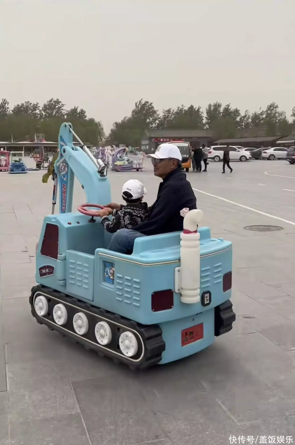 4月27日,老戏骨杜源的女儿晒出他的近照,称爸爸同儿子到了旅游景点后,都被挖掘机吸引了目光,一老一小坐上玩具拖拉机,玩得特别开心。