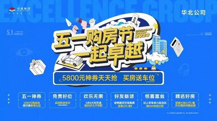 带好这份玩趣攻略,五一黄金周,卓越华北帮你安排得明明白白!购房至高补贴23万/套、购房送车位、送装修,老带新享高佣,赢华为手机,案场6大主题活动局,5天快乐不停歇!只要带上好心情,超嗨燃动小长假!
