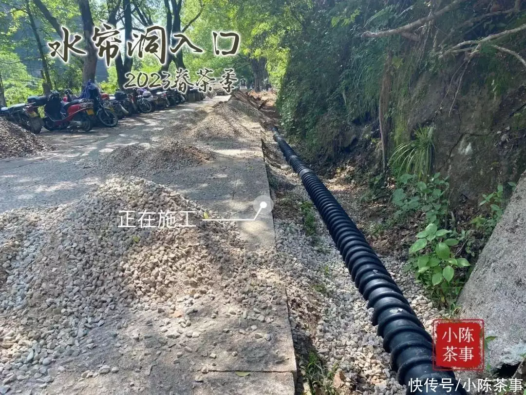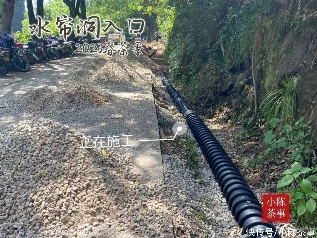刚过水帘洞的牌坊,正准备停下车时,发现前方在修管道。