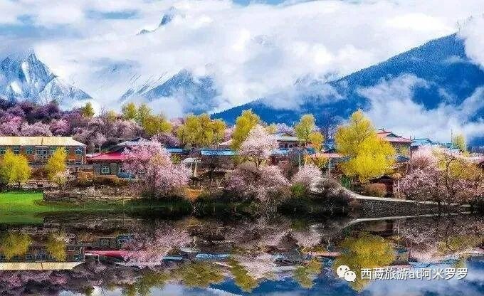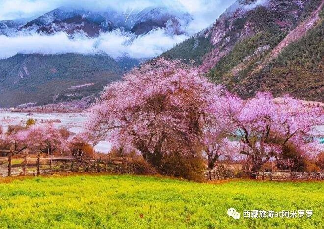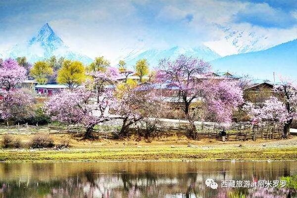 ---陶渊明笔下的《桃花源记》 每年3-4月时,西藏的冬天还未退去银妆,林芝的桃花却已如藏族姑娘脸上美丽的高原红,如醉霞绯云般地争相斗艳,不仅能让人欣赏“雪域江南”那独特的旖旎风光,对比能让人领略西藏最浪漫、最美丽的春天。远方的雪峰还有皑皑白雪,桃花已如醉霞绯云般地争相斗艳。