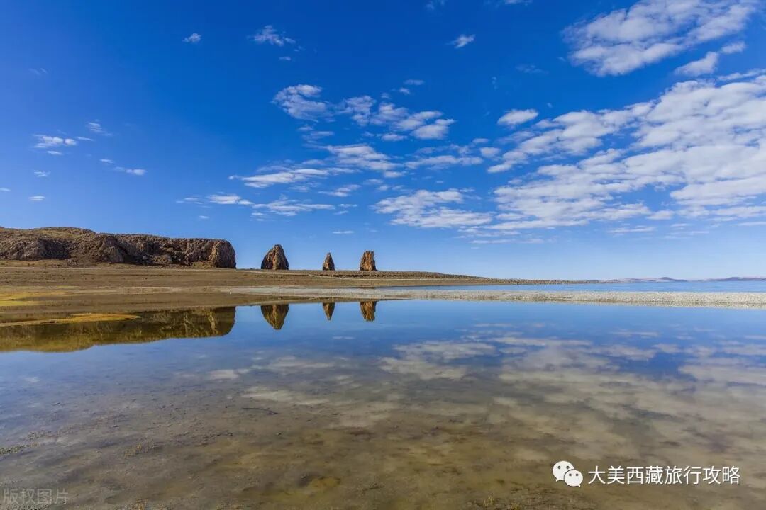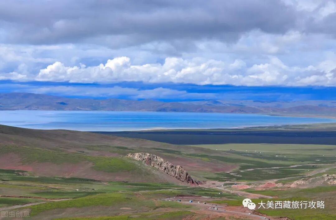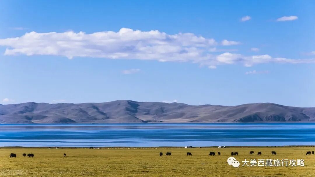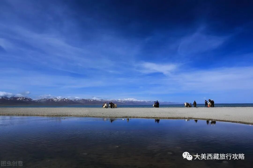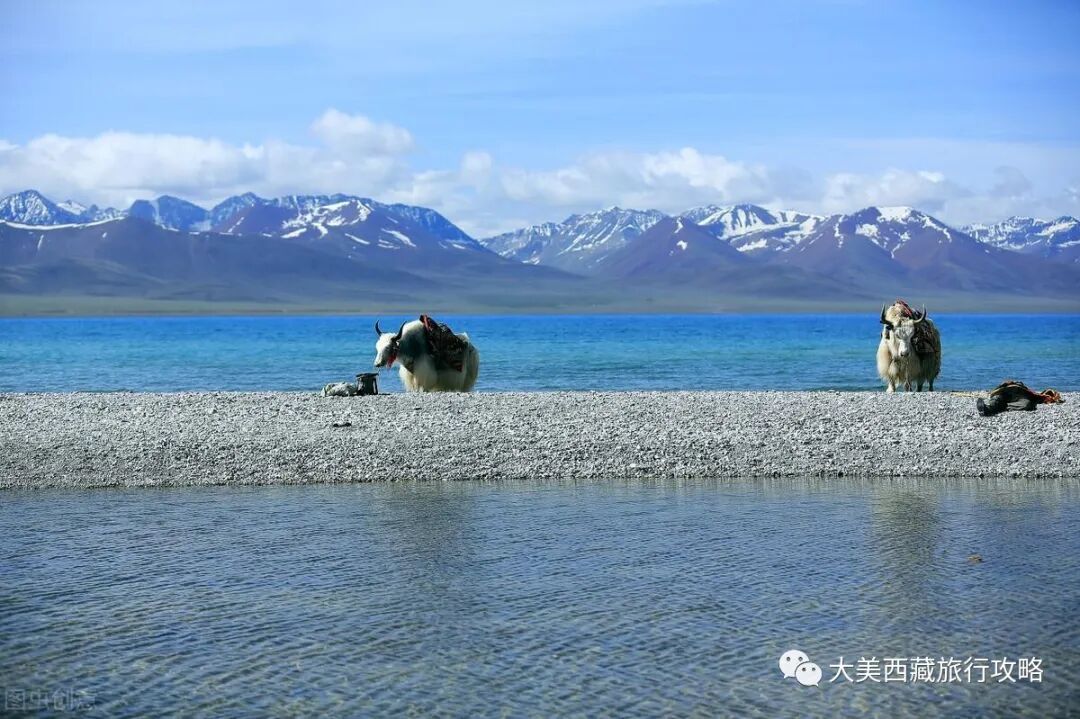 蓝色的海,泡芙般的云,白白的雪山,温柔的海风,站在纳木措湖边,放眼望去,蜿蜒巍峨的念青唐古拉雪山将纳木错湖拥抱在怀里。