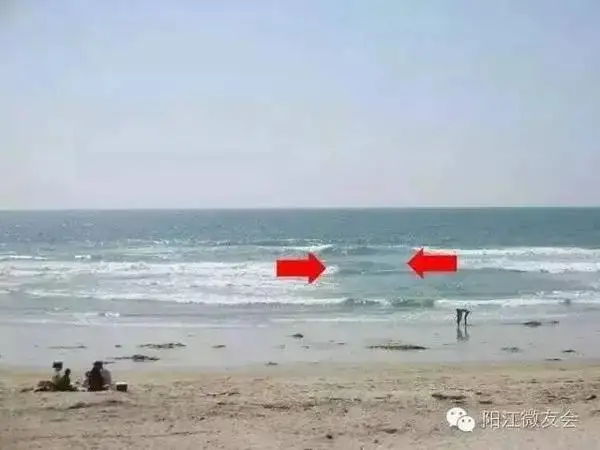 4、如果不慎被卷入离岸流中,或者感觉到小腿部有含泥沙的水流冲击,务必保持冷静节省体力,努力沿着平行于海岸的方向朝一侧游出。试图逆流而上想靠岸,只能越陷越深。如若无法从一侧游出,可以漂浮在水面上,随波逐流。直到流势明显减缓后,再向一侧努力游出,但一定要留足力气,大声呼救。
