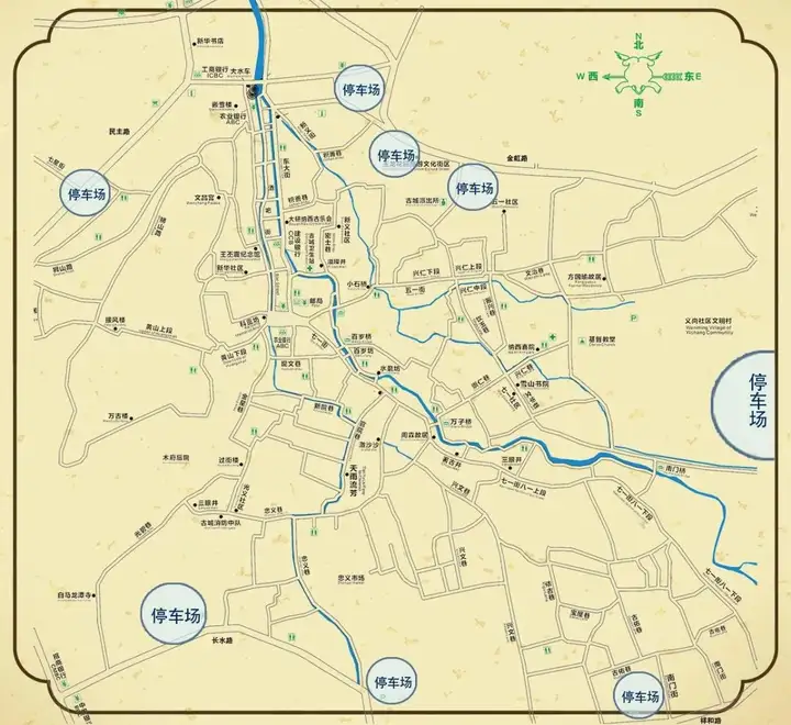 自驾游的小伙伴,可以将车停在古城周边的停车场。