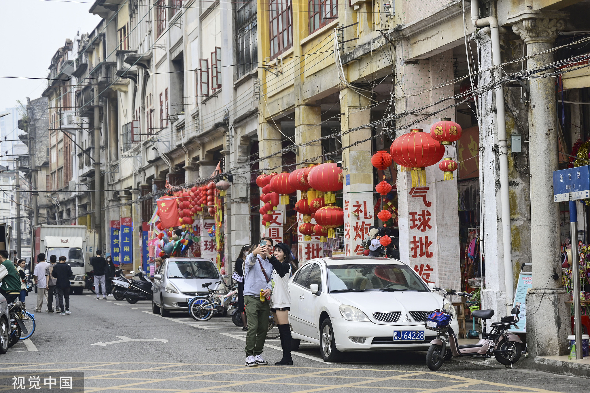 广东江门,游客在长堤历史文化街区内的电视剧《狂飙》拍摄点拍照。图片来源:视觉中国这座小城还有诸多美食,剧中经常出现的新会陈皮、广东肠粉、猪脚面等,游客都能实地品尝。