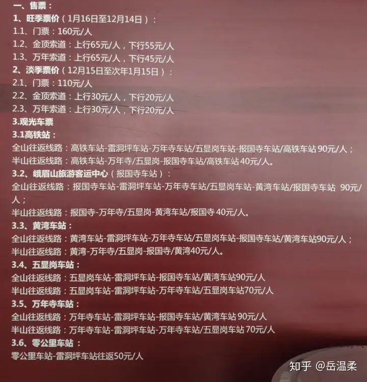 本地人:10元金顶索道:旺季:上行65元/人,下行55元/人。万年寺索道:待对比,忘了。旅游观光车票:全山往返90元/人,半山段往返40/人寺庙门票:万年寺:10元/人,报国寺:8元/人,伏虎寺:6元/人滑雪场:滑雪80元/人/小时