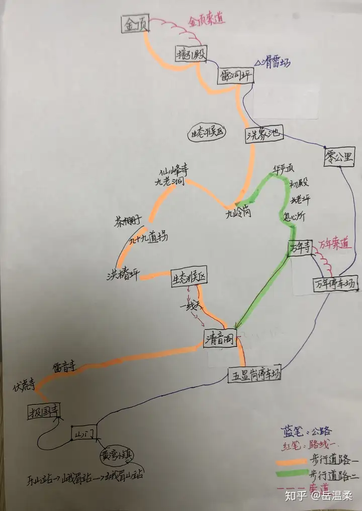 献上峨眉山地图,并附人工作画几条路线给大家参考。