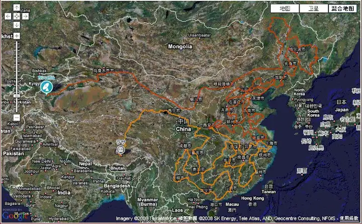 有个叫关口知宏的日本人,2007年进行了横贯中国的超长铁路旅行。历时7月,逛了中国南北方100多个城市。以上这张图是其路线图。 途经城市列表如下: