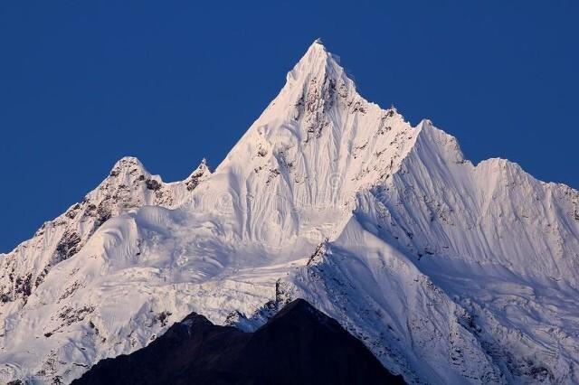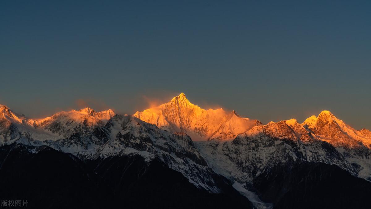 梅里雪山巍峨雄浑、冷峻圣洁,有一种震撼心灵之美,尤其是日照金山对比是很多人梦寐以求却难得一见的胜景。