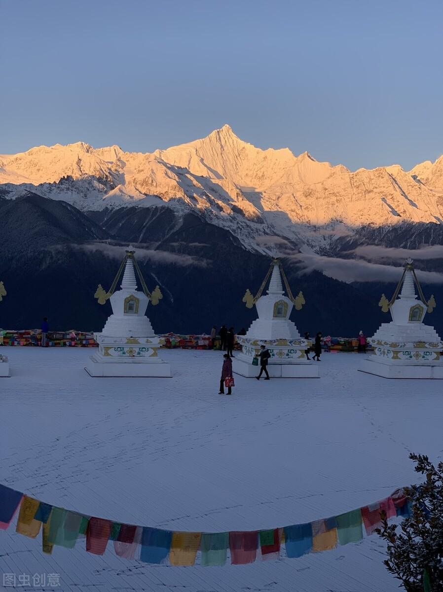 最佳观赏季节:10月底到1月份,只要不下雪,几乎天天日照金山。在六月到八月甚至连梅里十三峰都看不全,对比不用说日照金山了。