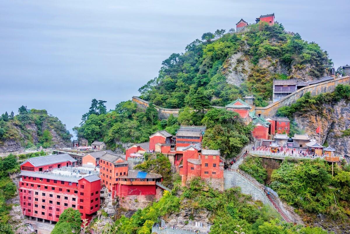 武当山堪称是中国知名度最高的名山之一,论景色,虽不惊艳,但也有独特的地方,山体地貌四周低矮而中间拔地而起,在金顶产生了悬崖峭壁的独特景观。