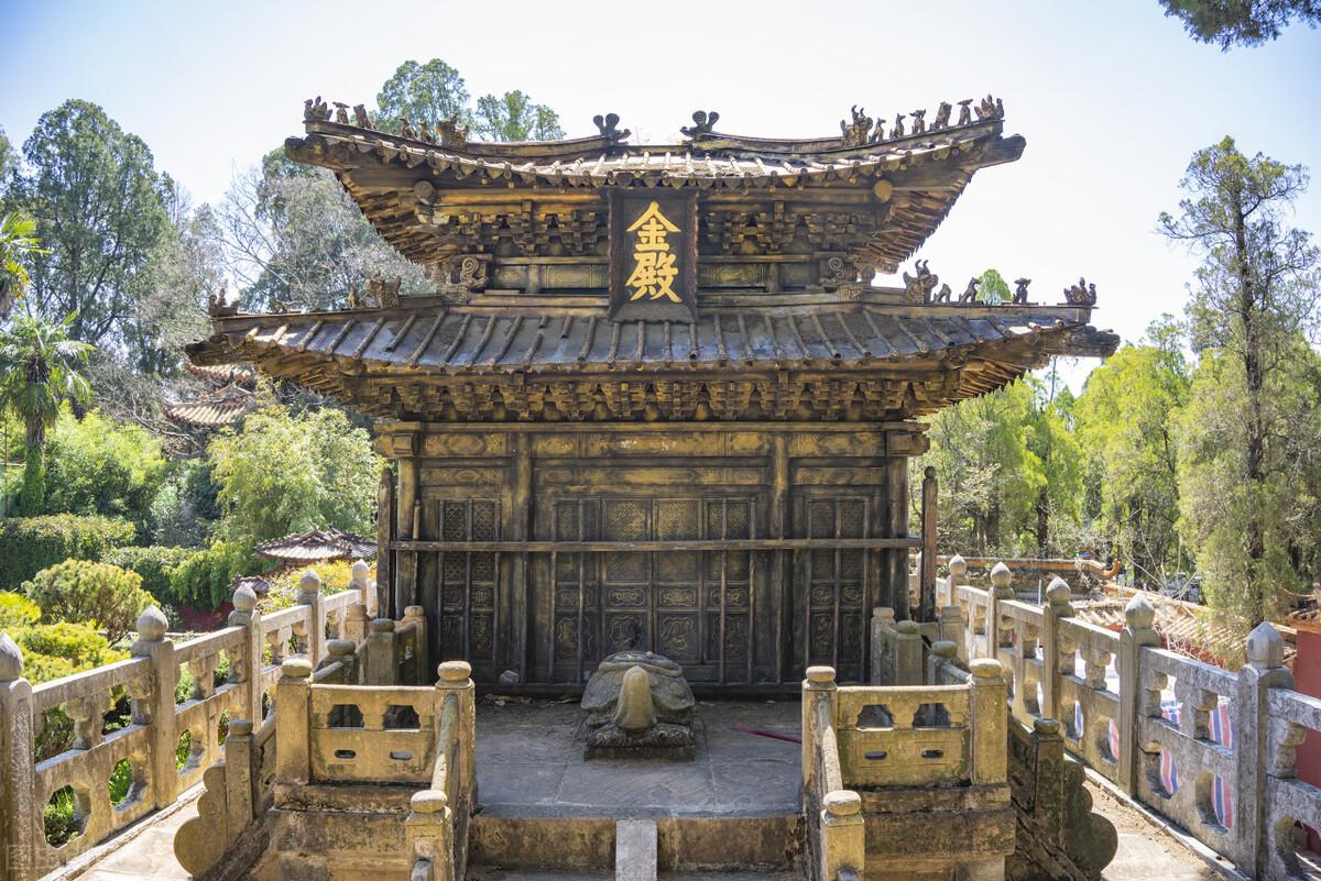 金殿,位于金顶之巅,是中国现存最大的铜铸镏金大殿,当年建造用了20吨精铜同300两黄金,金殿里面还有一盏600多年从未熄灭的长明灯。金殿里面供奉着真武大帝,朝拜者络绎不绝,进到里面祭拜要在紫宵宫预约。