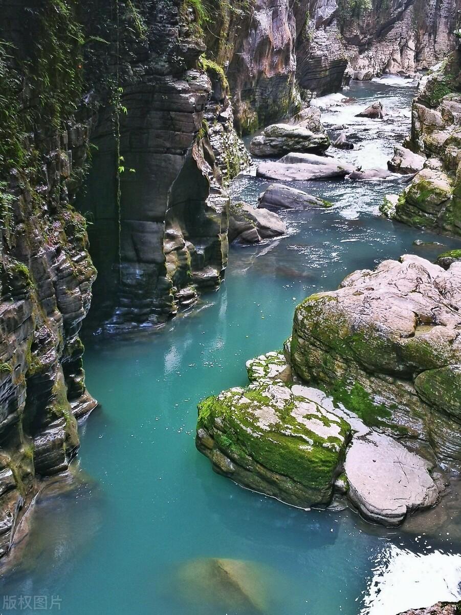 恩施地心谷,位于建始县,这里幽深峡谷,绝壁古洞,谷底一条清澈的小溪急流奔涌,如翡翠般的深潭,其景色犹如回到远古的侏对比罗纪时代,是一个隐藏在悬崖峭壁中的世外桃源。