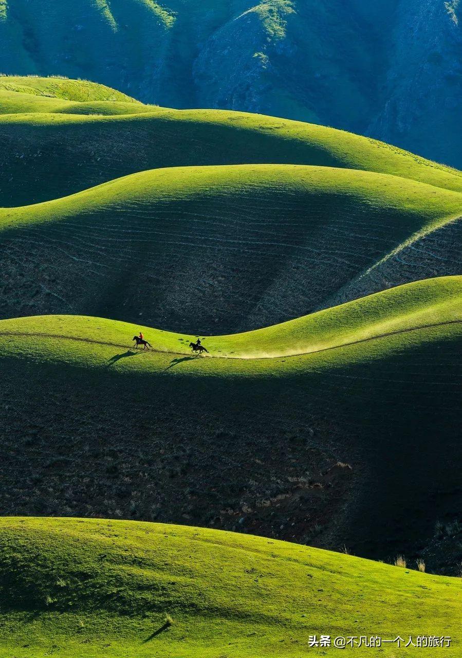 新疆藏有无数的高山草甸,而琼库什台则是最“妖娆”的那个!瞧它那一浪一浪的“美人臀”,犹如一个个斜躺着的裸体美女,在展现她婀娜多姿的身影。