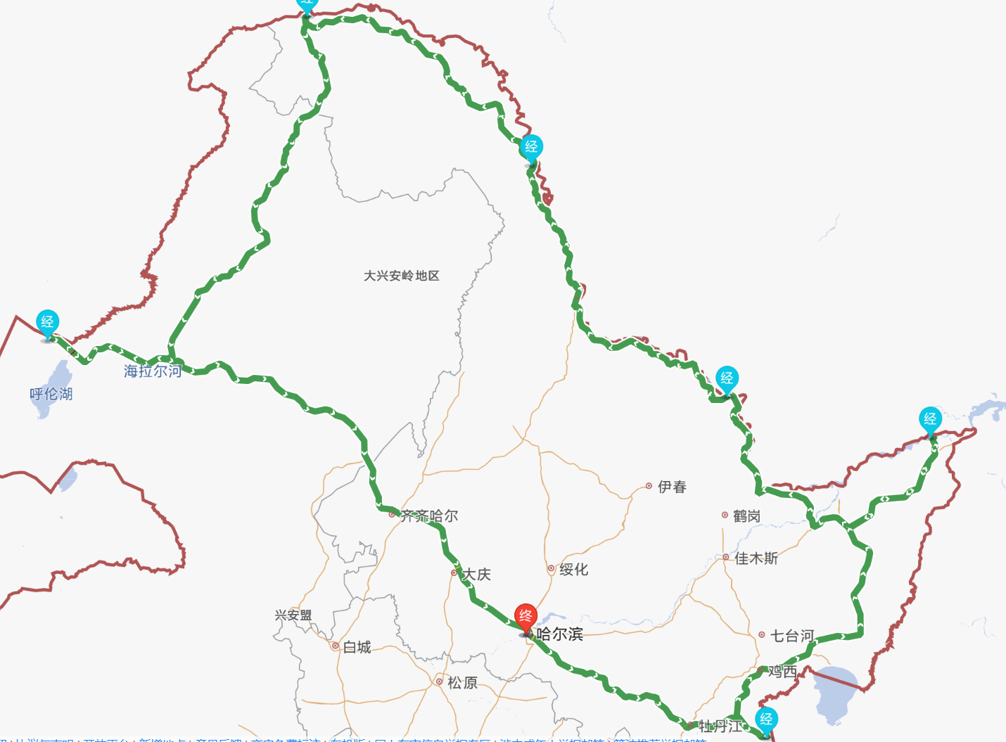 自驾线路:哈尔滨-绥芬河-兴凯湖-虎头要塞-珍宝岛-乌苏镇-黑瞎子岛-抚远-同江-萝北-嘉荫-逊克-黑河-呼玛-十八站-龙江第一湾-北红村-北极村-落古河村-漠河县城-满归镇-根河-莫尔道嘎-临江-室韦-卡线-恩同-额尔古纳湿地-黑山头-满洲里-金帐汗-哈尔滨。