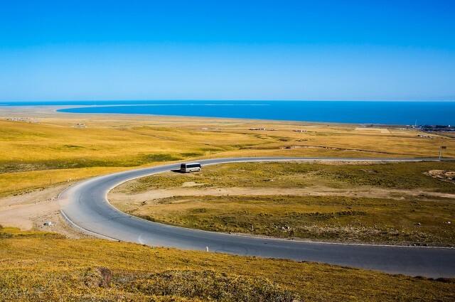 西台吉乃尔湖,距离东台吉乃尔湖60公里,315国道从这里穿过,近3公里的水上公路将湖面一分为二,泾渭分明,景色迷人。