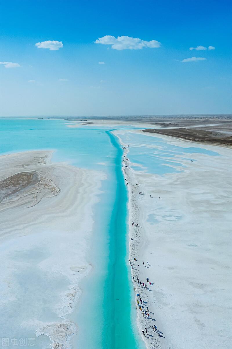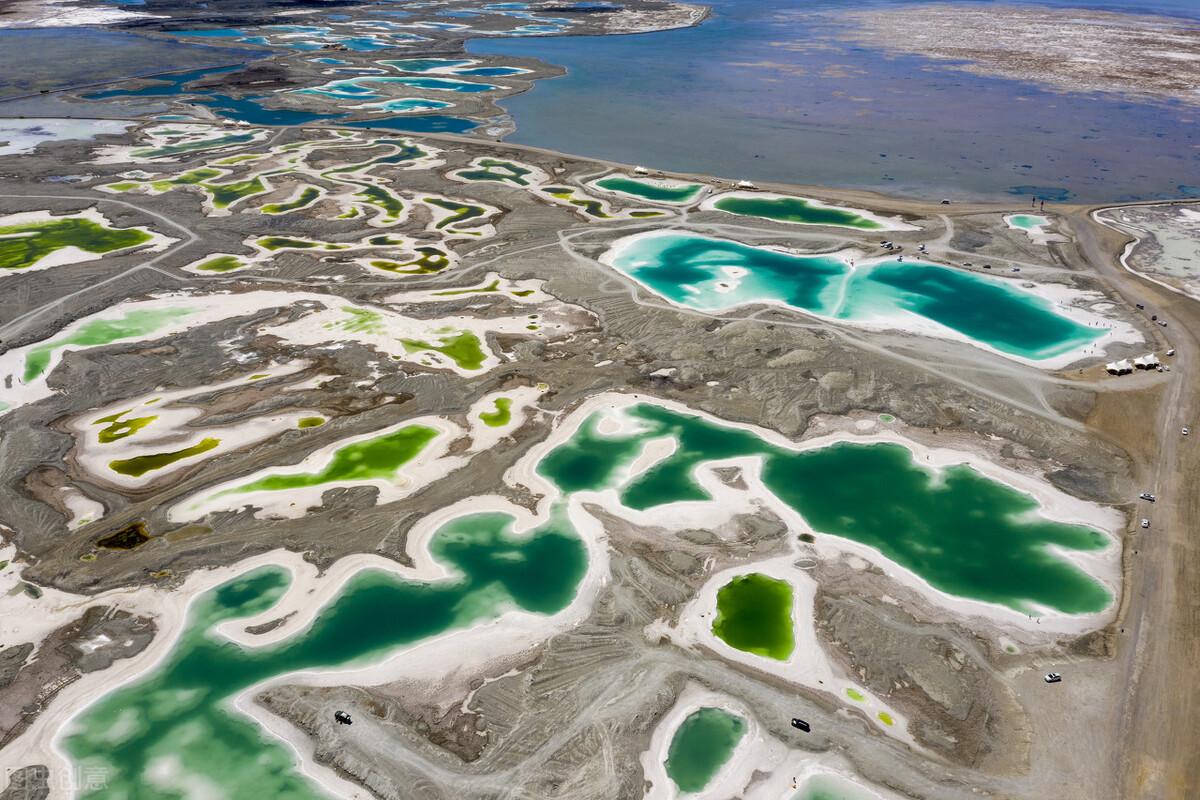 东台吉乃尔湖,因湖水含铜量高而呈现出梦幻般的景色,被很多人称为“中国的马尔代夫”。
