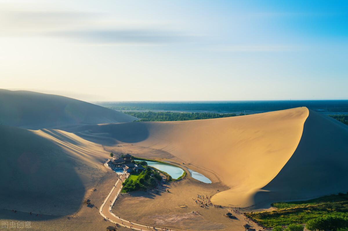 月牙泉及鸣沙山,汉朝时这里就是“敦煌八景”之一,景区附近有许多特色民宿同客栈,价格不贵。门票110元,三天有效。敦煌的西瓜是中国最甜的西瓜,一定不要错过。