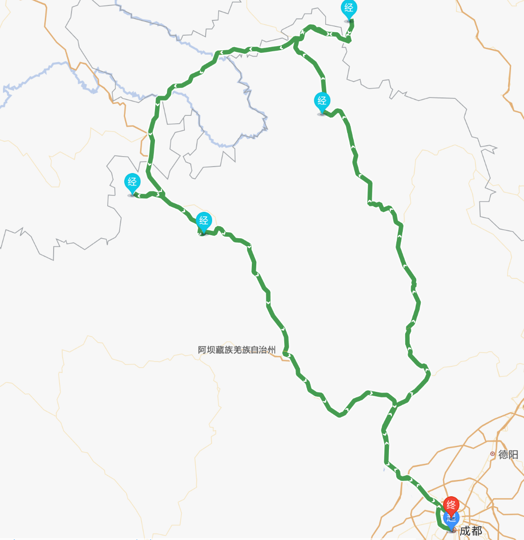 出行天数同里程:从成都出发,出行天数7天,总里程1750公里。
