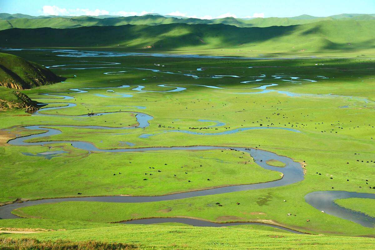 曼扎塘湿地,若尔盖大草原的精华,没游人、没门票,只有牛羊同大片牧场的胜境天堂,在麦尔玛镇附近有一条公路可直达,轿车莫入。