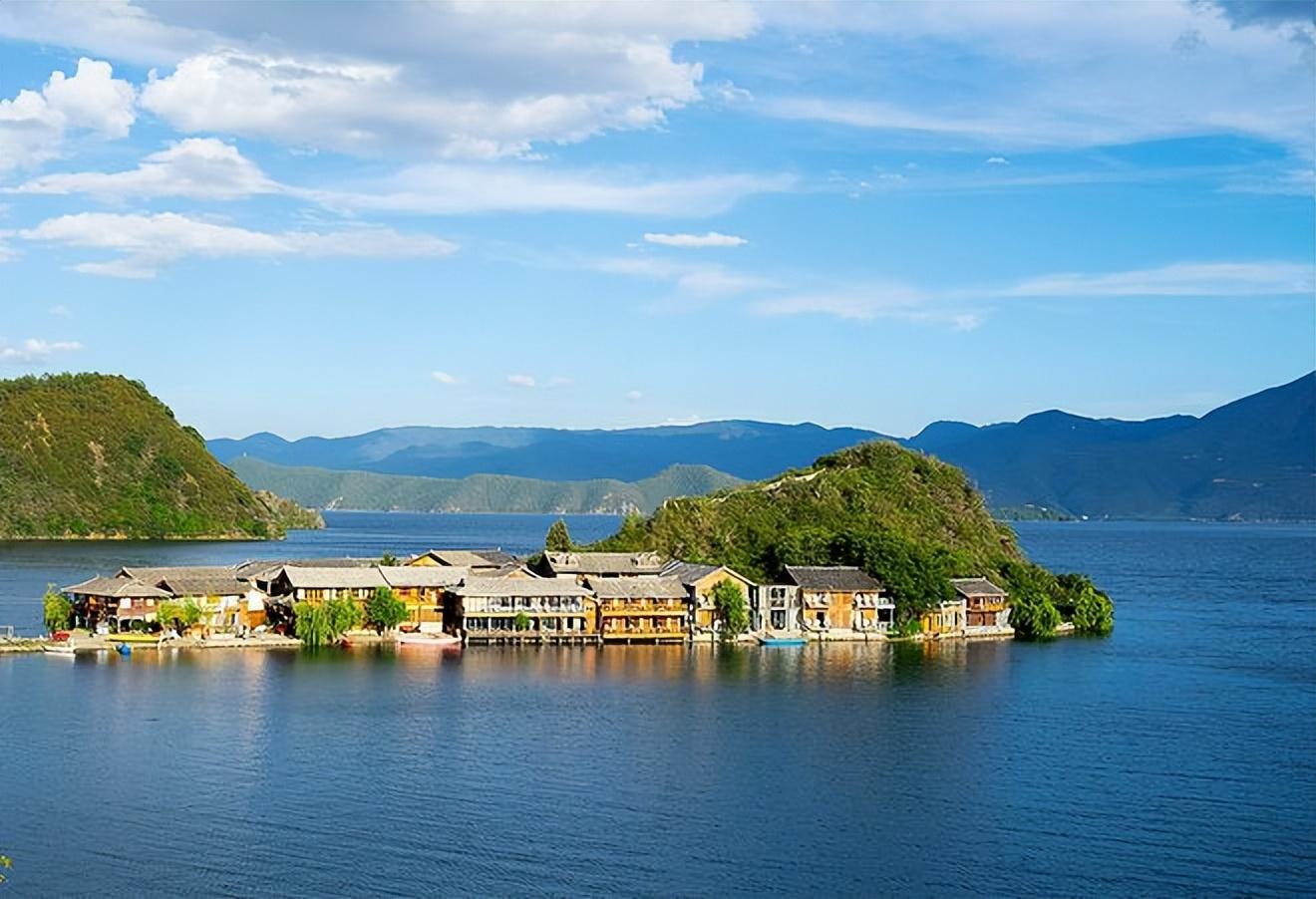 这里湖水清澈蔚蓝,森林资源丰富,是云南海拔最高的湖泊,被人们誉为“蓬莱仙境”。沿湖有许多值得去的景点,划分为格姆女神索道、小草海、泸沽三岛等,可以骑着电瓶车环湖游玩。