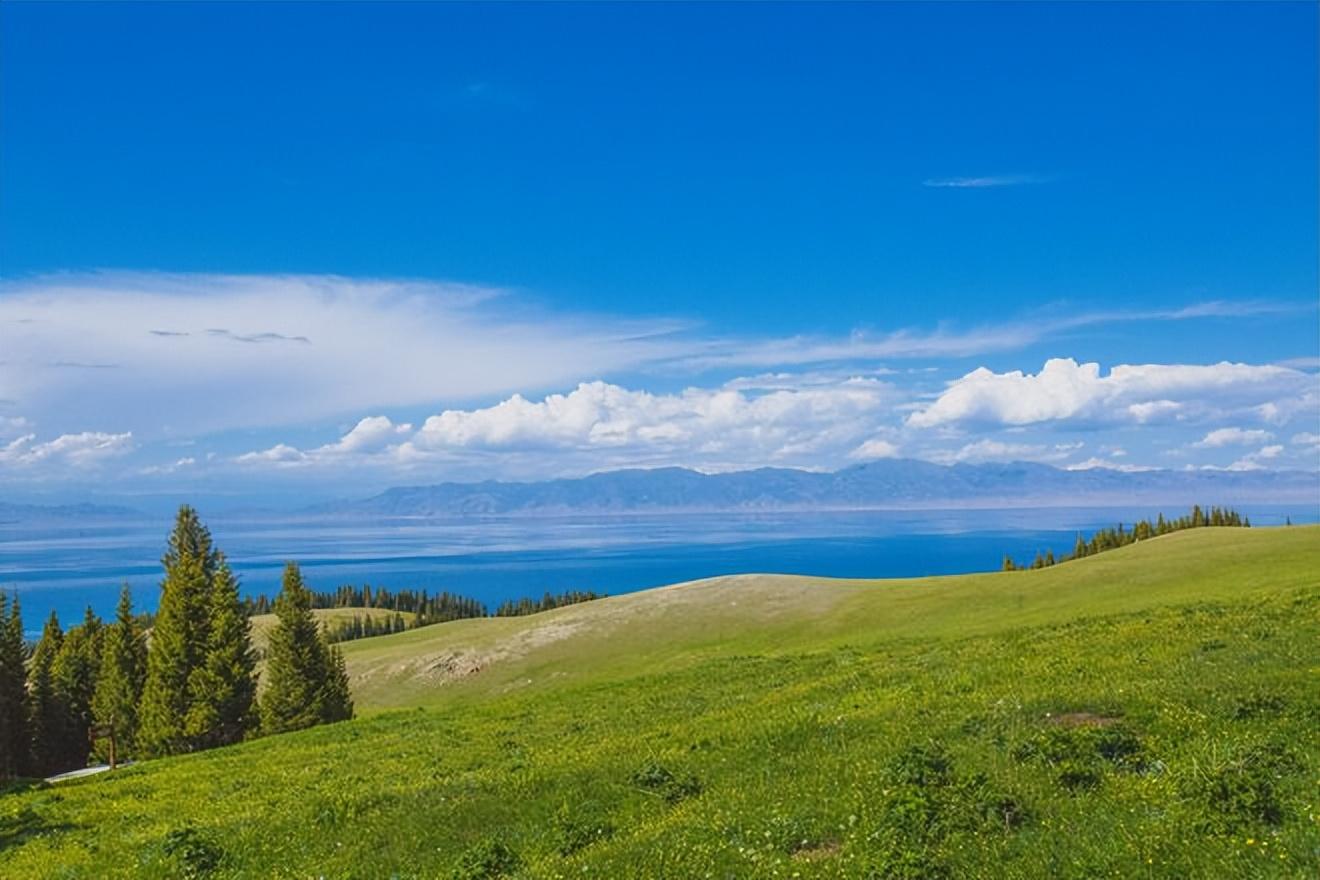 赛里木湖背靠雪山,湖边是广阔的草原,湖水清澈蔚蓝。湖水的颜色会随着光影变化而变化,每一种都纯粹至极。