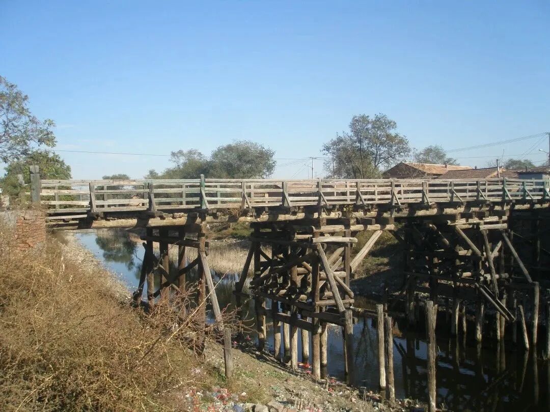 该桥建于民国时期,1952年重建。长31.8米,宽5米。该桥为木质结构,两侧有护栏19根,材质为黄花松,护栏原涂有绿色油漆,现已基本剥落。桥面铺有沥青路面,有桥墩5个,桥墩南侧有迎凌柱5根。现为南运河静海境内独一的木桥。