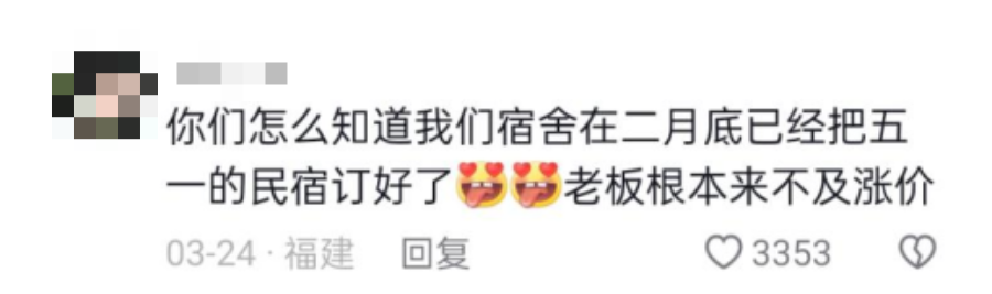 你看这位同学二月就早早地订好了民宿老板都还没来得及跌价呢那住宿费可不是就很便宜(老板:失策了失策了大家还在计划五一出游
