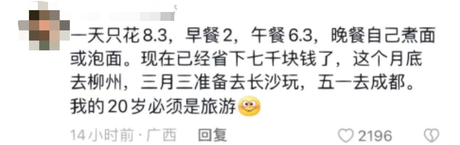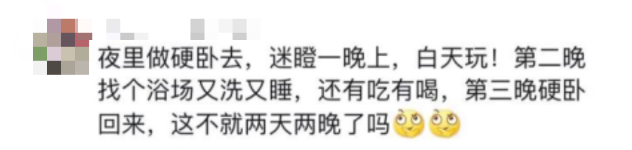 出去玩,路费和住宿费占了花销的大头这可难不倒我们来回时睡在火车上不就节省了两晚的酒店钱再不济多些伙伴挤一间房间咱主打一个能省则省,经济实惠!还有同学来支招