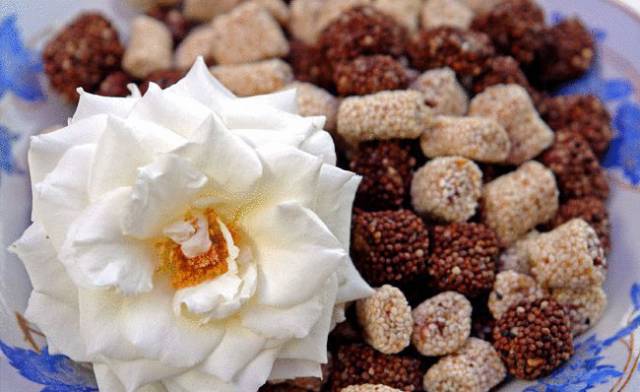 青岩黄家玫瑰糖始于清康熙年间,系黄家祖传工 艺,采用麦芽、玫瑰花及优质泉水精心熬制而成,口感 甜而不腻、回味悠长。现在古镇内,随处可见“黄家玫 瑰糖”,最正宗的在状元故居附近,已有300年的历史。 来到这家店铺,热情的女老板会端上用玫瑰酱冲制而成 的玫瑰水,并引见玫瑰糖的悠久历史和制造工艺,引领 游客参观玫瑰糖生产、制造8。