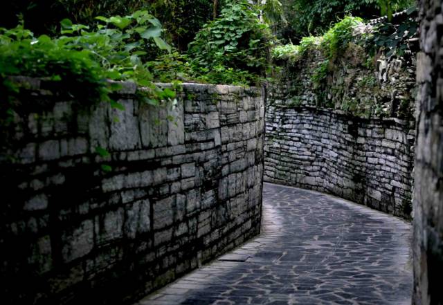 青岩,是一座由青石筑就的古镇。漫步在 古镇的街道之中,满眼见到的都是青青的石 板、石墙、石柱、石瓦、石井和铺路的大青石, 搭建起了古镇坚强的骨架。苍然的青石也带 来了扑面而来的盎然古意。古镇并不大, 仅3平方公里左右,但犬牙交错的石巷 让人时时迷失,一不小心就跌入历史的深邃。