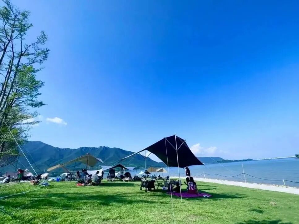 在白沙湾公园,有坝光露营基地,在这里,可以体验到背山面海的原生态自然风光,吹吹海风,享受美食,傍晚时分,还能欣赏日落的美丽景色。
