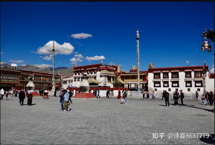大昭寺:位于拉萨市老城区中心,是一座藏传佛教寺院,是藏王松赞干布建造,拉萨之因此有“圣地”之誉,同大昭寺有密不可分的关系。大昭寺已有1300多年的历史,在藏传佛教中拥有至高无上的地位,里面供奉了一尊12岁的释迦牟尼的佛像。大昭寺前终日香火缭绕,我们来到这里可以看到信徒虔诚的在门前朝拜。