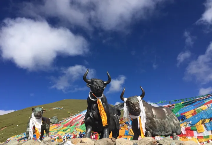 ·米拉山口有三座牦牛铜像,请不要擅自攀爬到铜像上拍照。