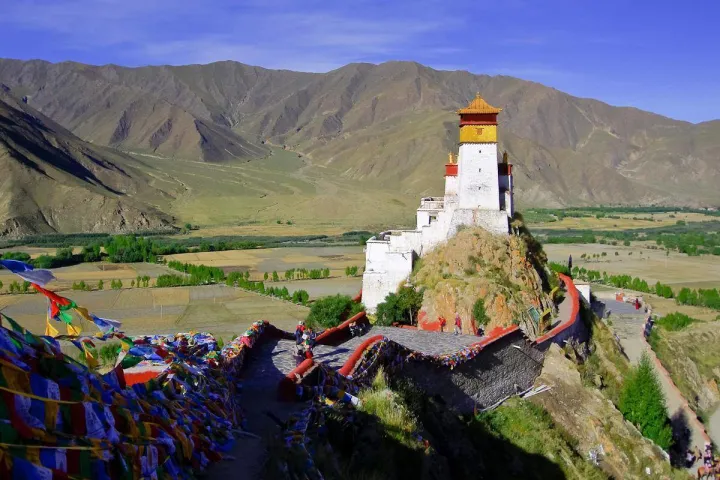 是西藏历史上的第一座宫殿,也是当年松赞干布同文成公主夏季避暑之地,距今已两千多年。雍布拉康位于泽当11公里的扎西次日山上,寺虽不大,但耸峙山头,居高临下,十分有气势。站在塔楼上凭高远望,雅砻河谷风景同田园风光尽收眼底。景区门票50元,宫殿内部不开放参观。